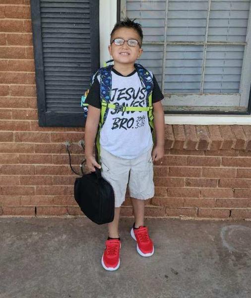 My grand-nephew AJ at the start of his learning journey on his first day of kindergarten (photo by his mom, Courtney Otto, August 12, 2024)
